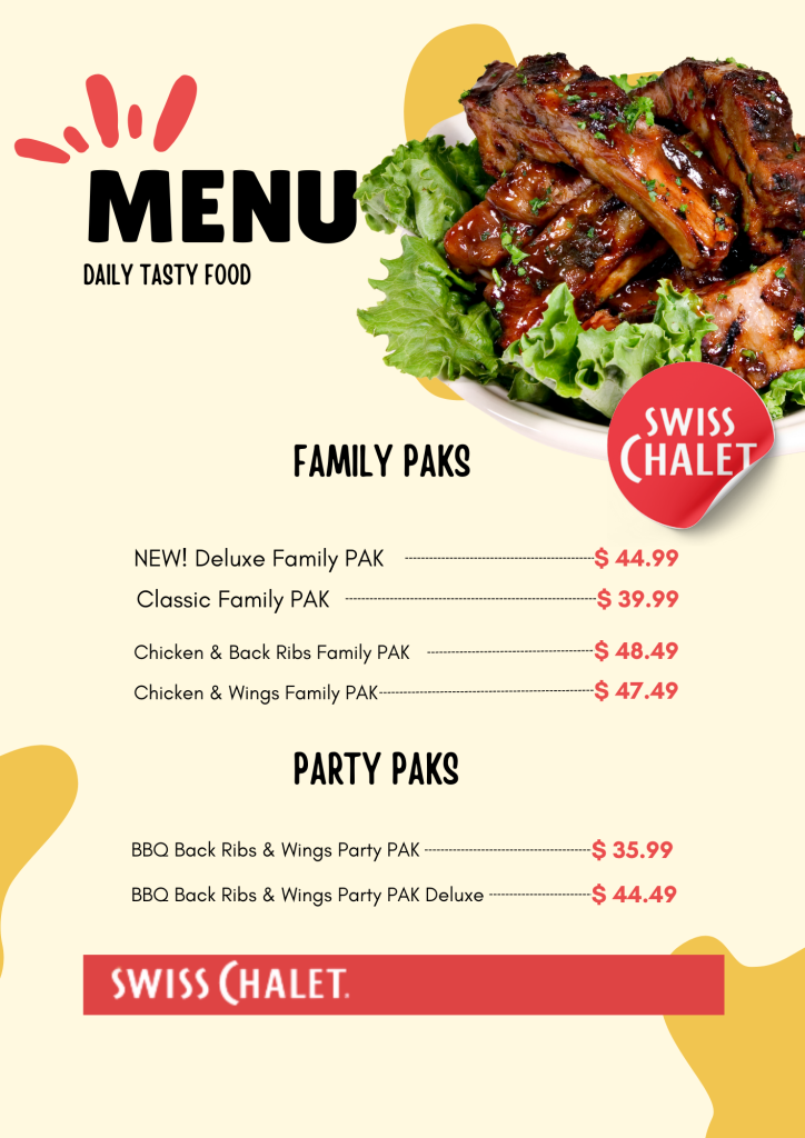 Latest Swiss Chalet Menu With Prices In Canada